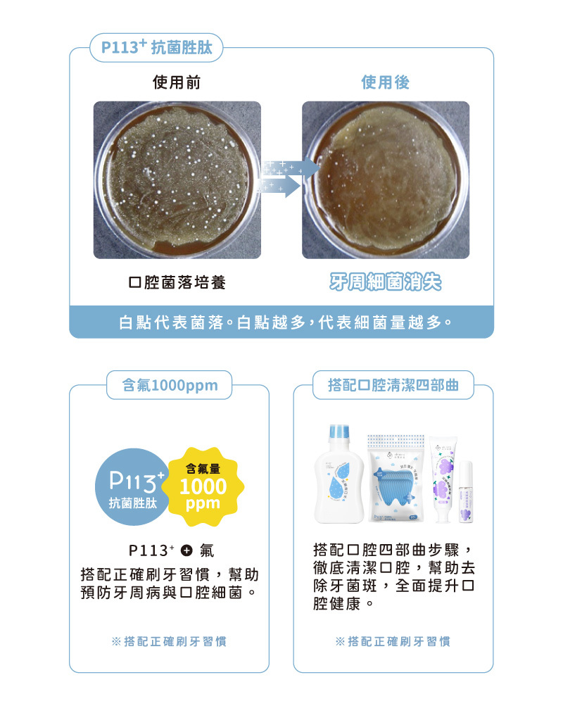 ‧ 添加美國獨家專利P113+抗菌胜肽