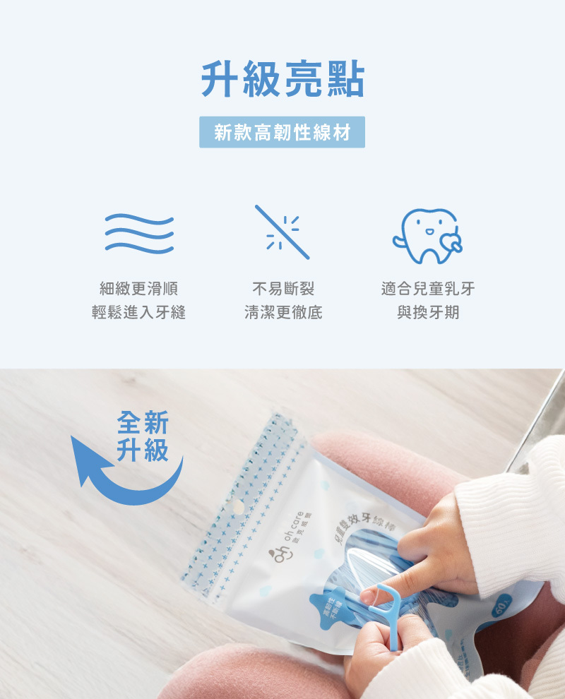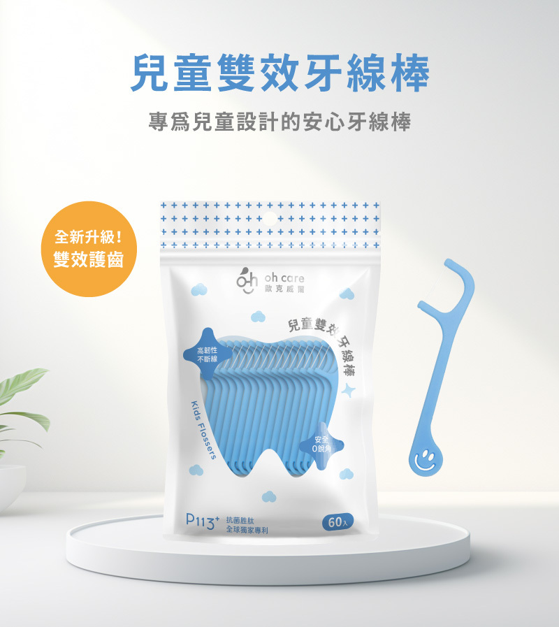 oh care 歐克威爾 P113+ 雙效兒童牙線棒300入/袋