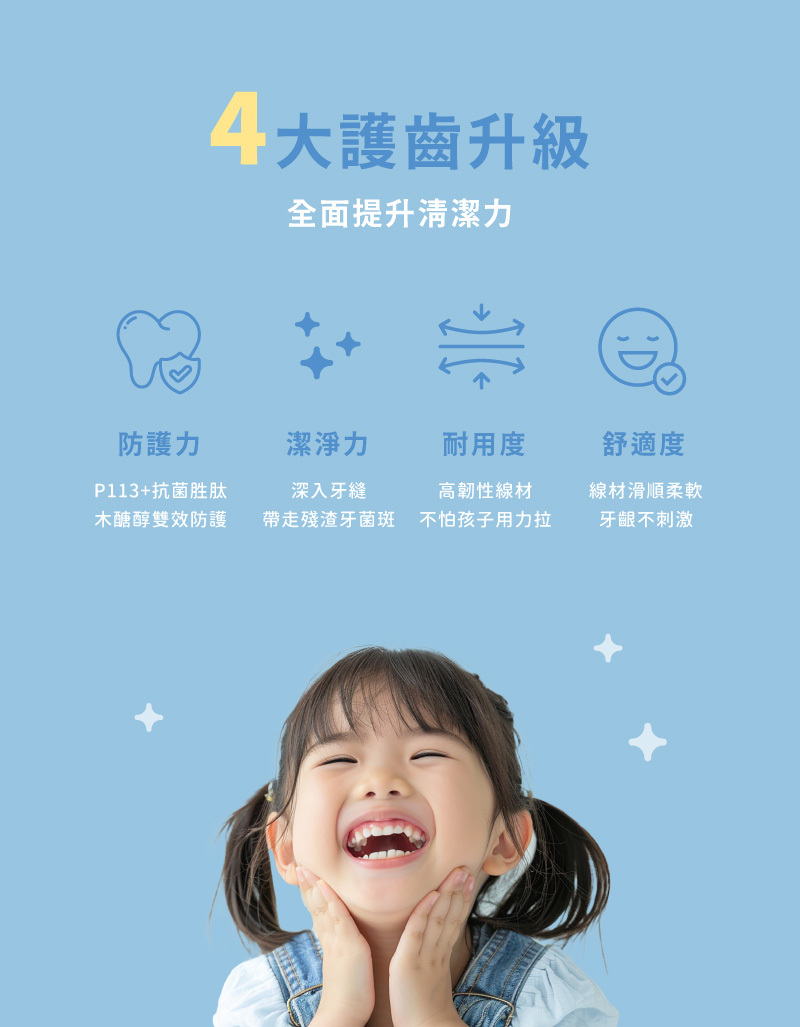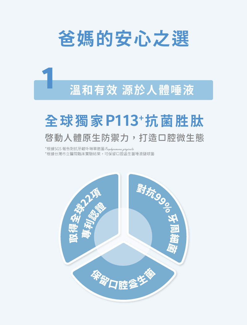 。添加雙效護齒成分-木醣醇與P113+抗菌胜肽