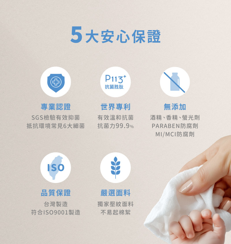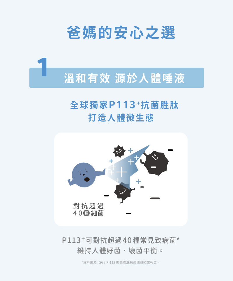 💧添加全球獨家專利 P113+ 抗菌胜肽,溫和抗菌