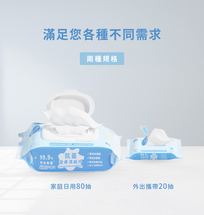 專為兒童設計的溫和抗菌濕紙巾,外出、通勤、旅遊隨時清潔