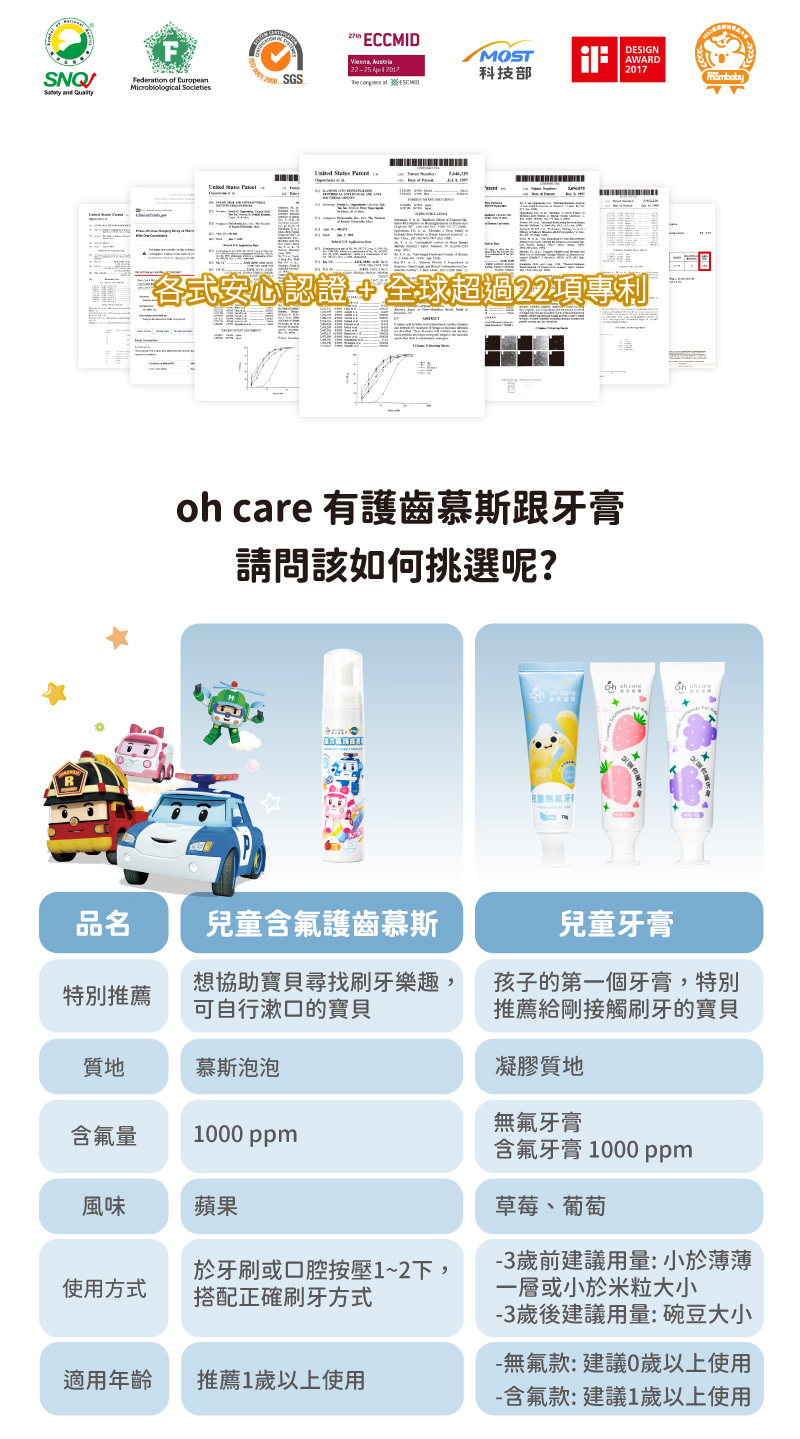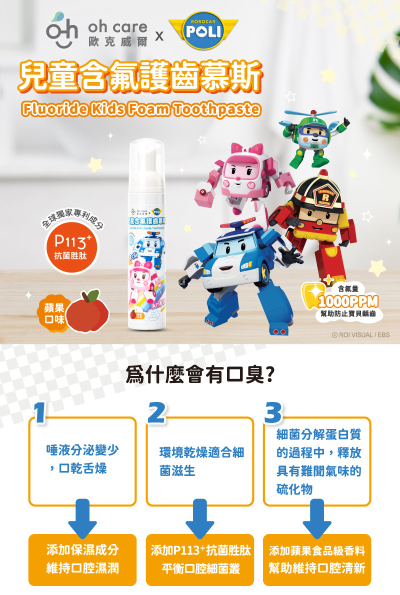 oh care 歐克威爾 波力兒童含氟護齒慕斯