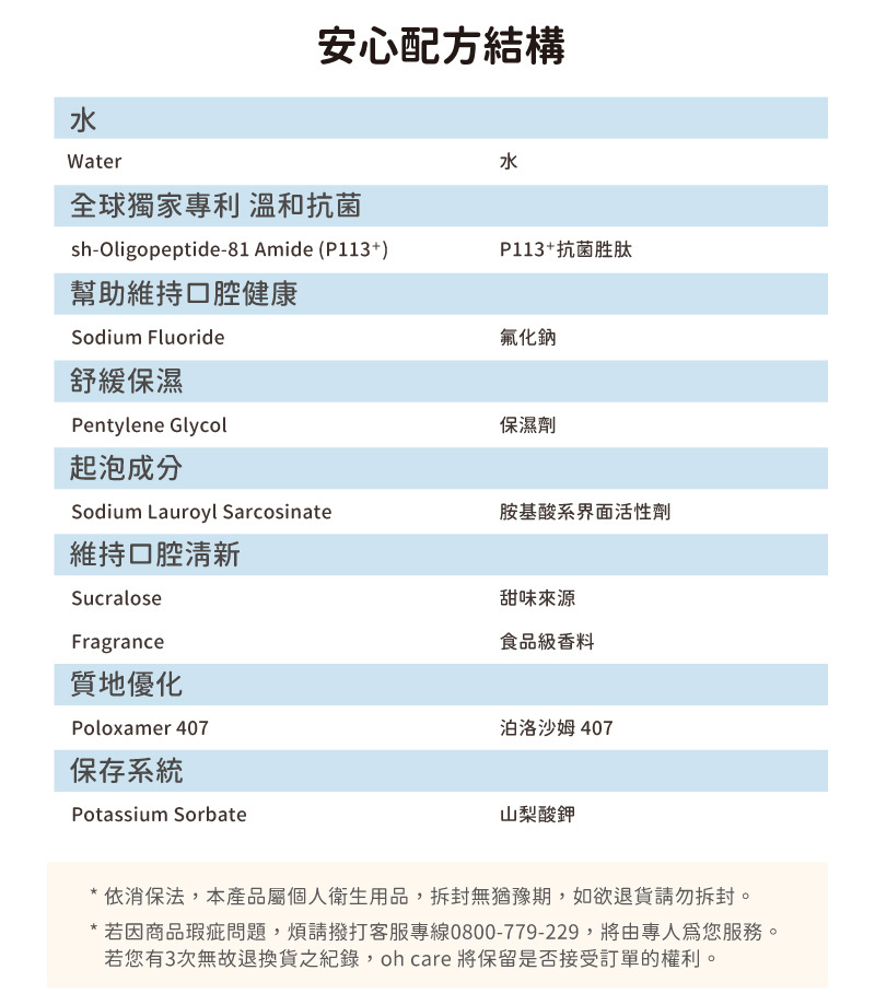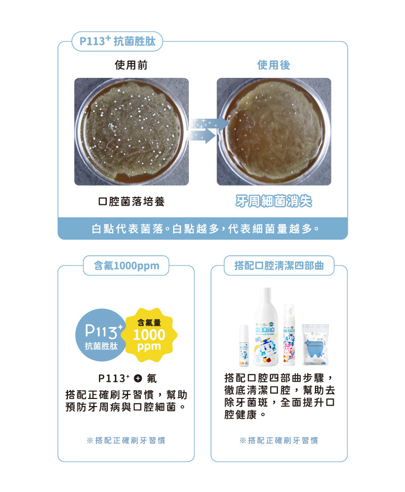 P113抗菌胜肽 x 氟化物 雙重防蛀成分